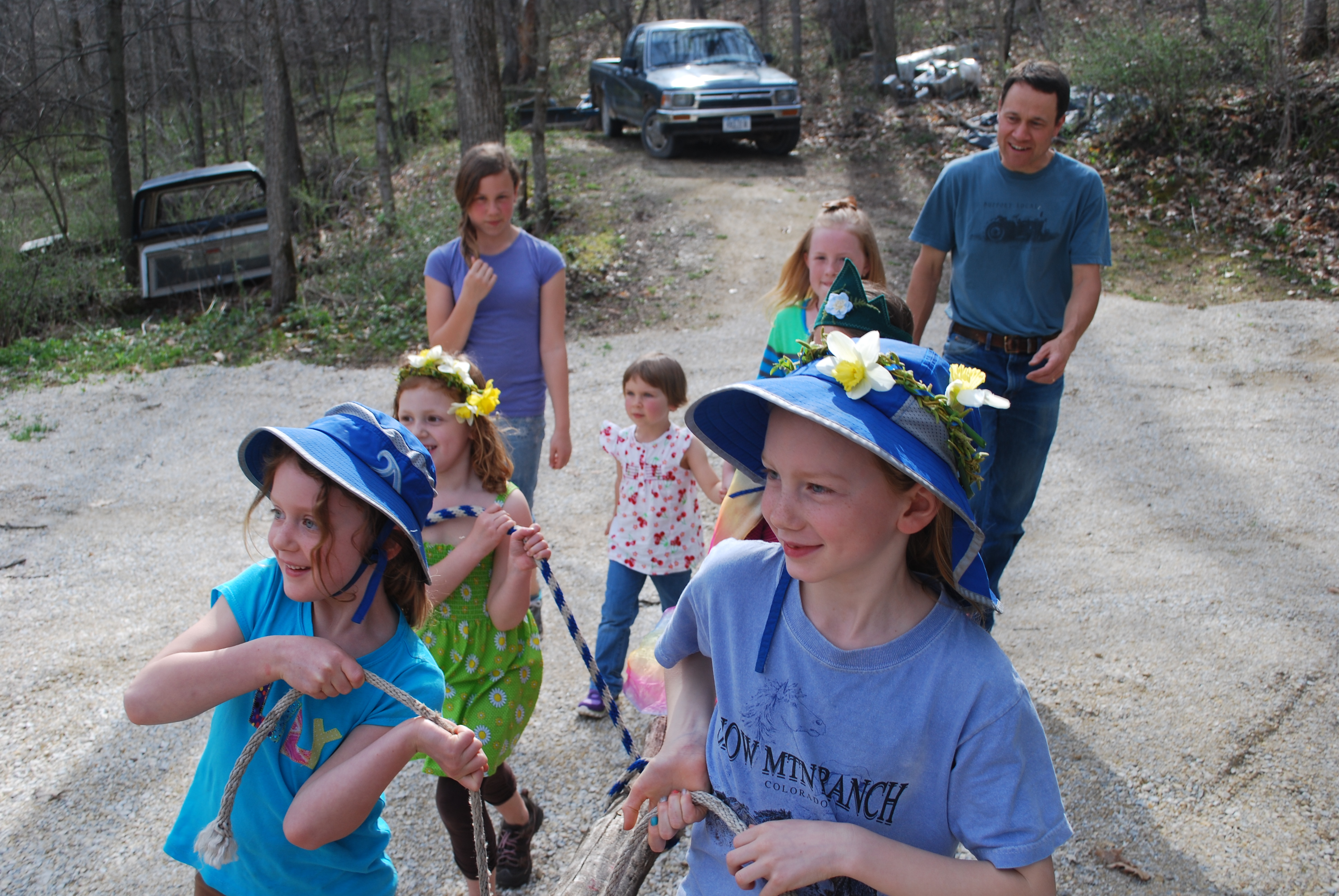 The girls are great travelers. They love their roll-y suitcases!