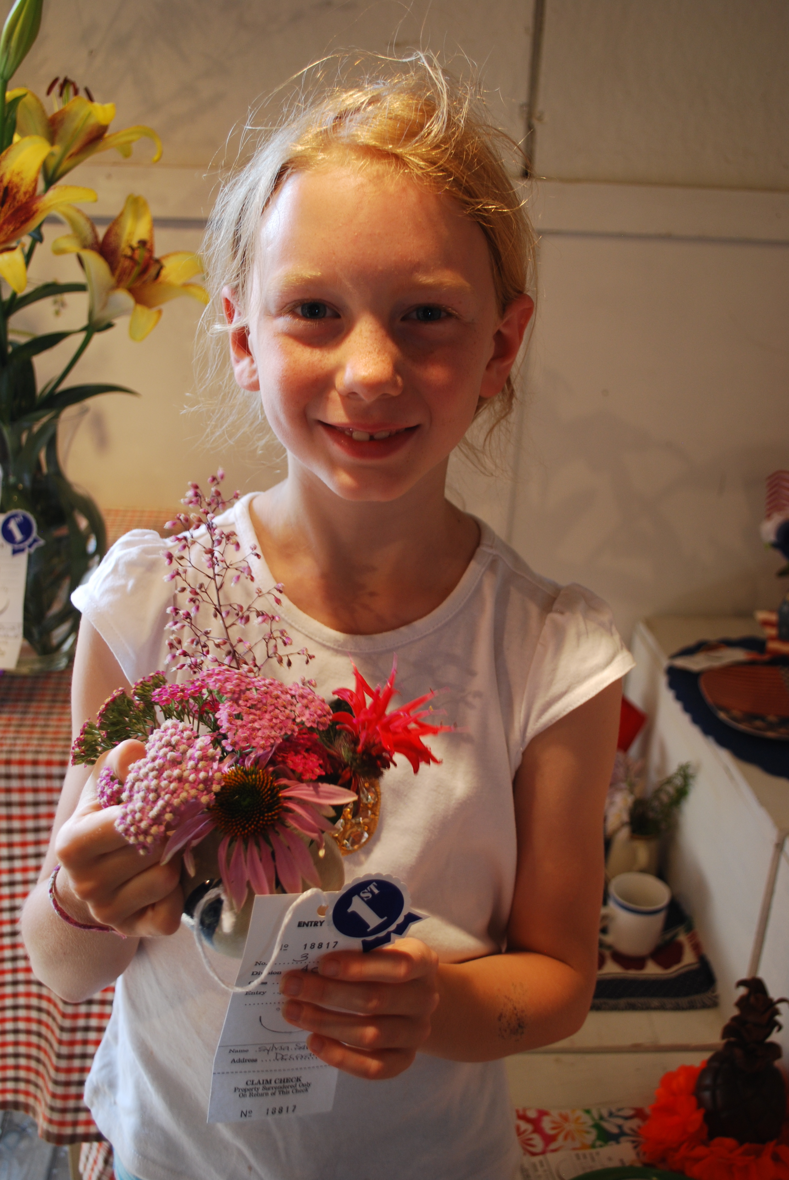 Our family loves going to the fair! We like to see the animals, watch the judging shows, eat ice cream and ride the rides. The Winneshiek County fair is small and simple, but still very entertaining and fun. This year, the girls and I decided to enter a few things in the flowers and vegetables division. We had a great time putting together our flower arrangements and picking just the right snap peas to present. And, we all won ribbons, too!