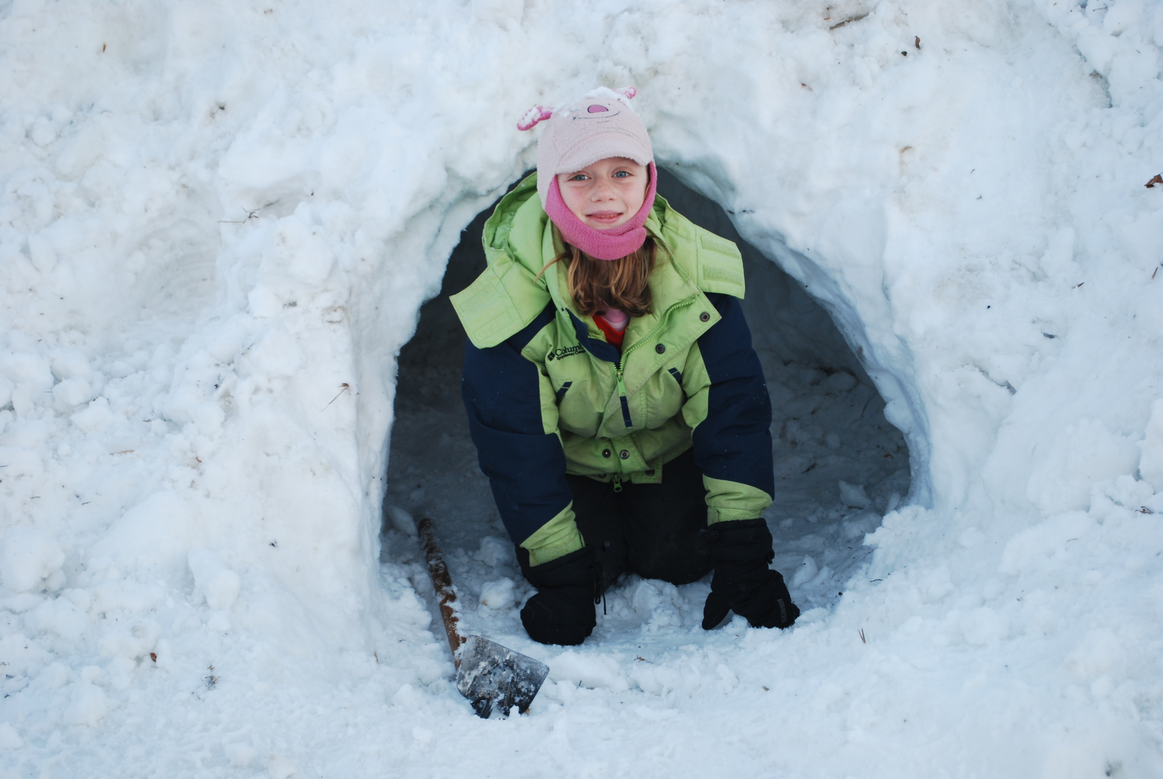 We spent a lot of time outside – skiing, skating and one warm afternoon, building tunnels in a huge snow pile. The cousins had a raucous snowball game!