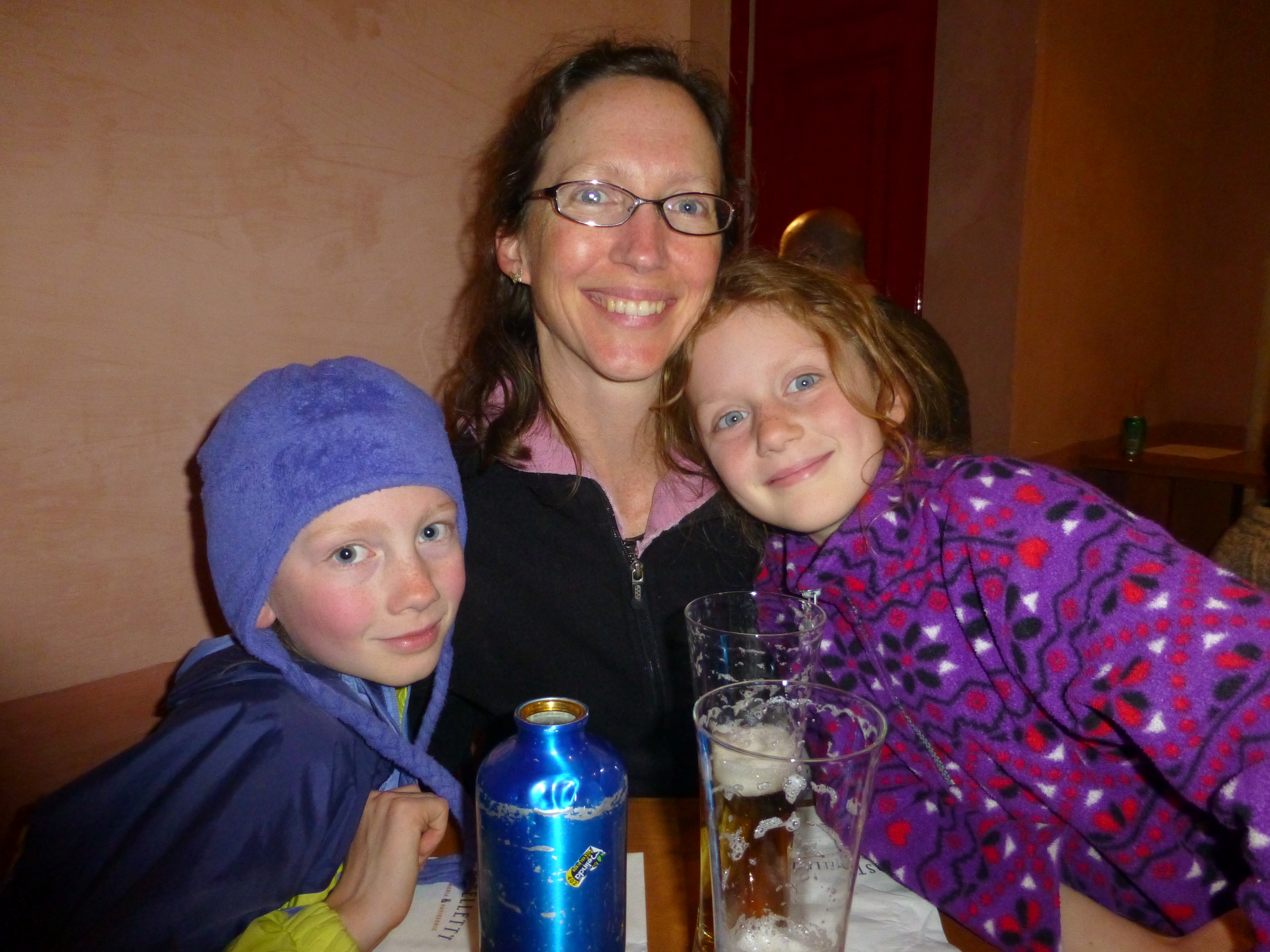 Continuing down the hall a bit, we come to our small but functional kitchen. The girls are making me lunch! And yes, the kitchen is too small for the refrigerator so you’ll find it in the hall. However, the washing machine does fit nicely in the kitchen, right behind me.