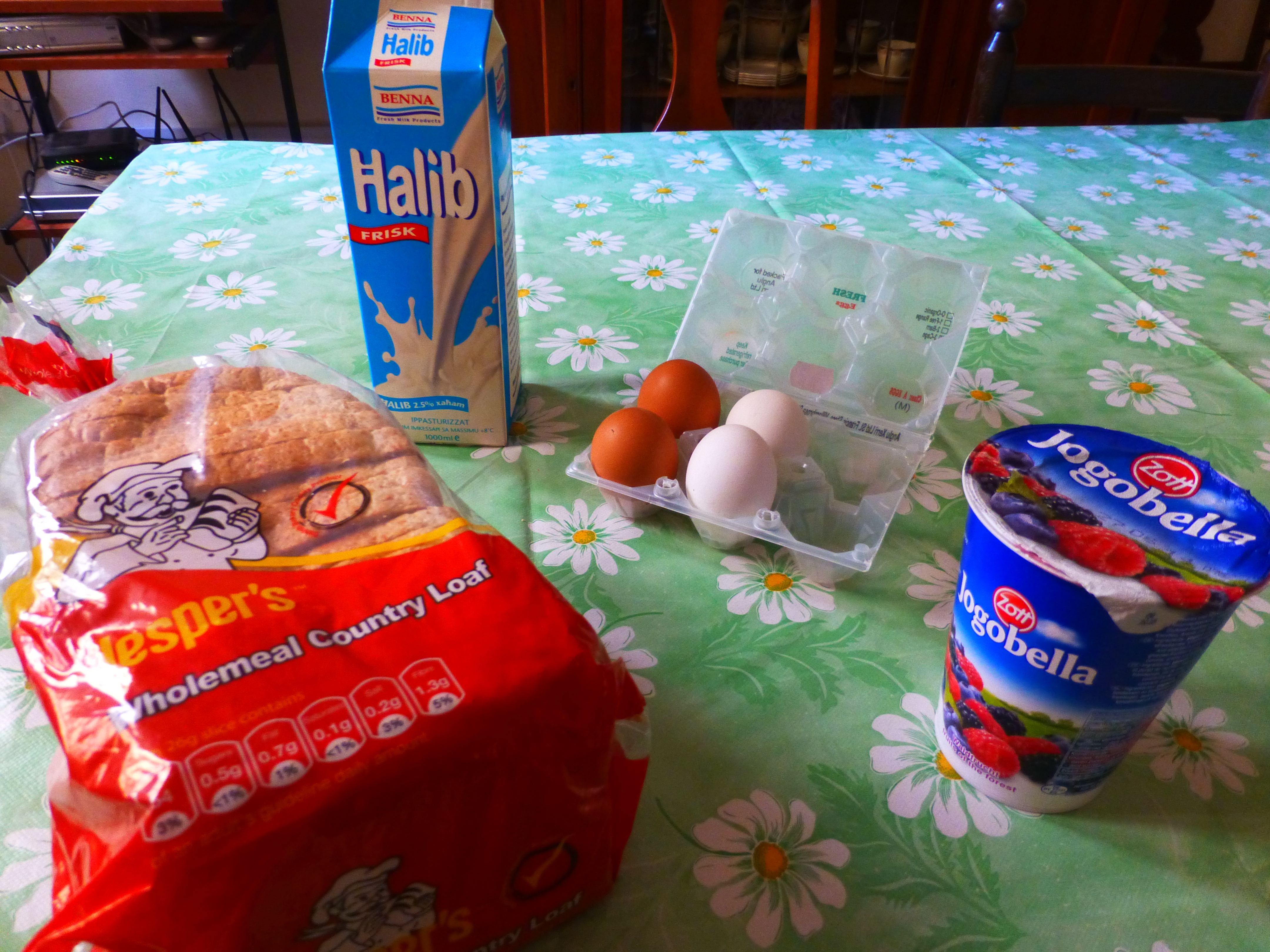 These were our typical breakfast foods. Missing from the picture was cereal – the sames kinds you can get here! We were surprised the first time we went to buy eggs: they are not refrigerated in the store. They go in the fridge once you get home! The bread and milk are Maltese products. The yogurt was from Germany.