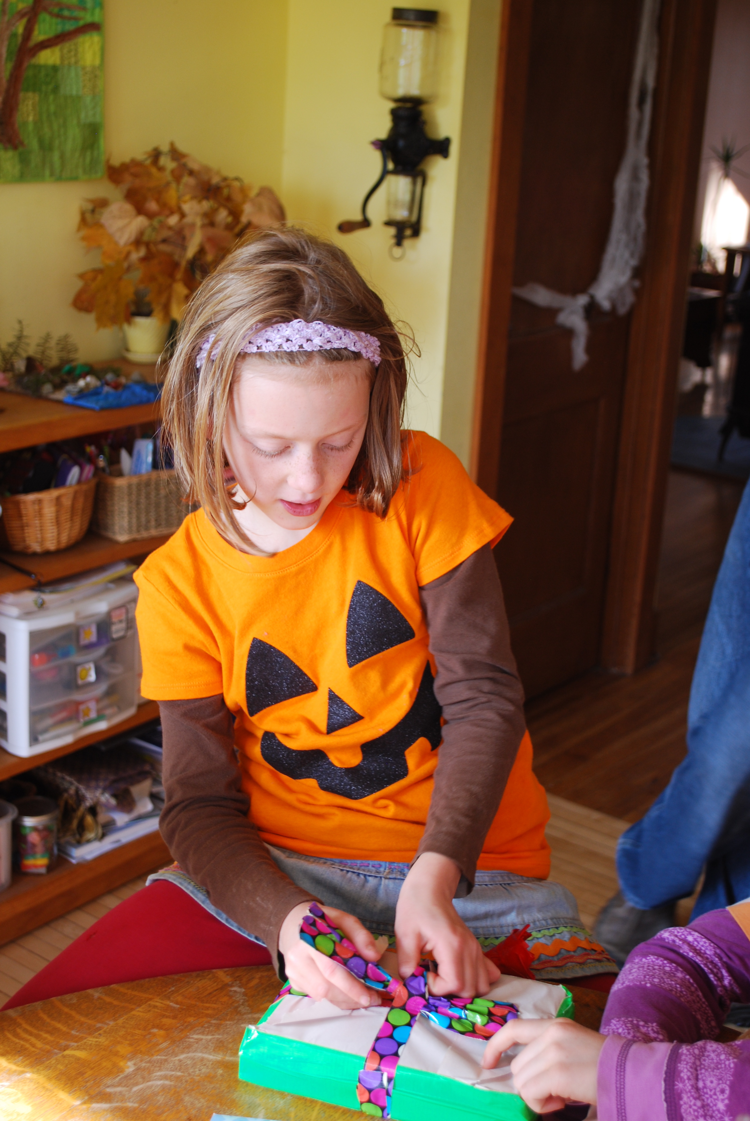 The only decent photo I have of them! This was after supper and before they went out trick-or-treating.
