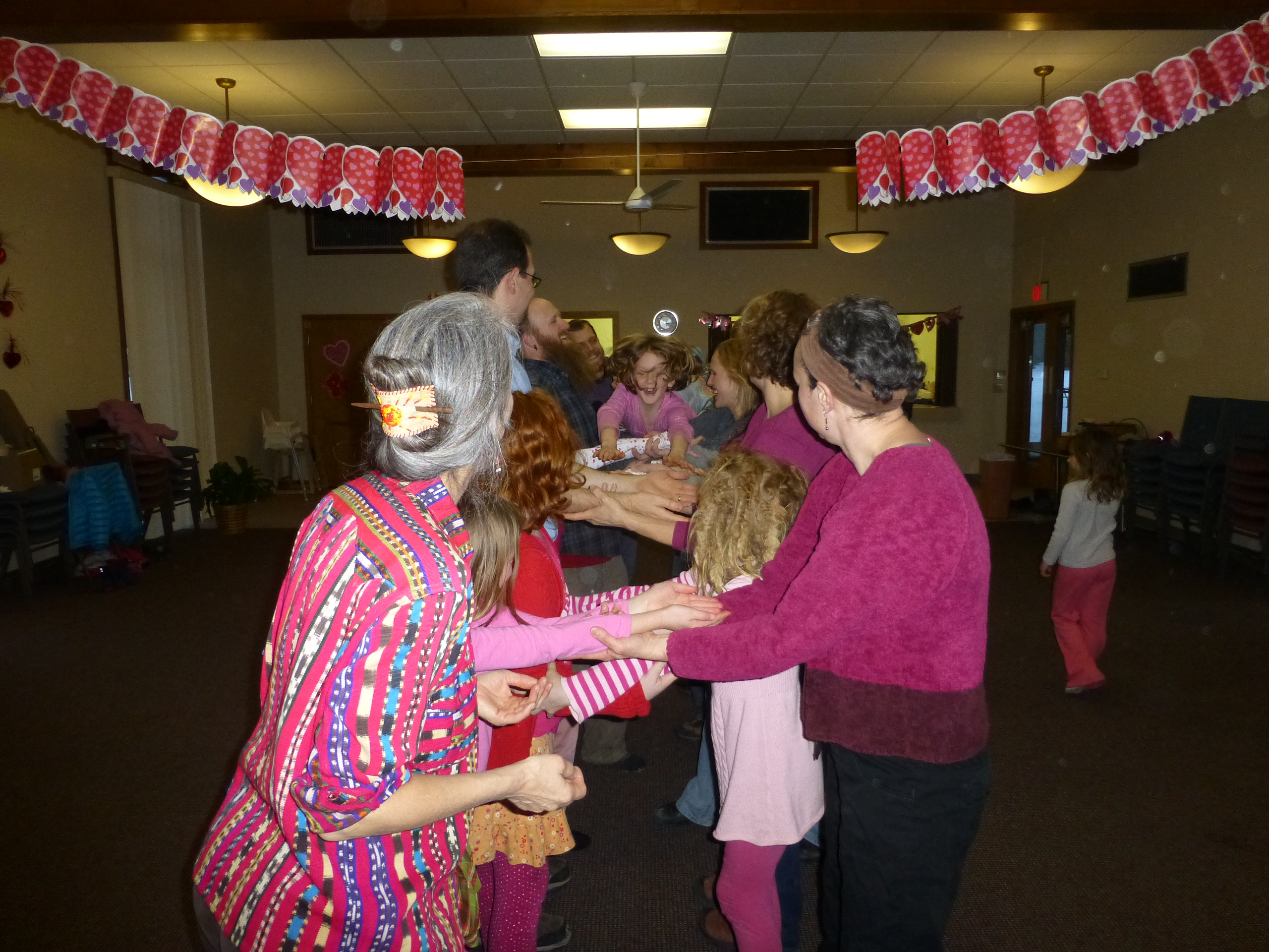 We play fun games, like the Valentine Suck Relay (the unofficial name). The kids have to suck up hearts with straws and transport them to the other side of the room.